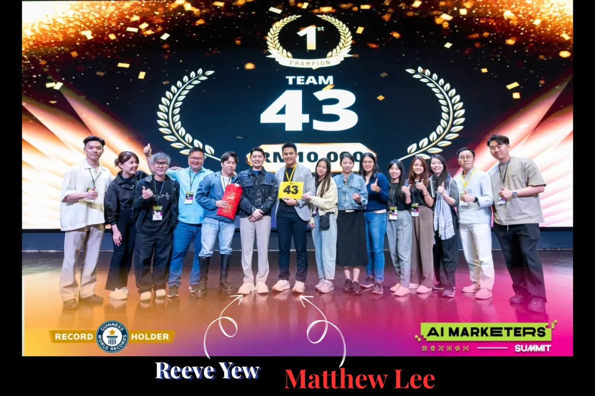 At the AI Marketers Summit (AIM), a large-scale live event with 1,200+ participants and a Guinness World Record challenge for one of the largest in-person marketing trainings, I led a 15-person team to become the Overall Champion among competing AI Marketer groups.